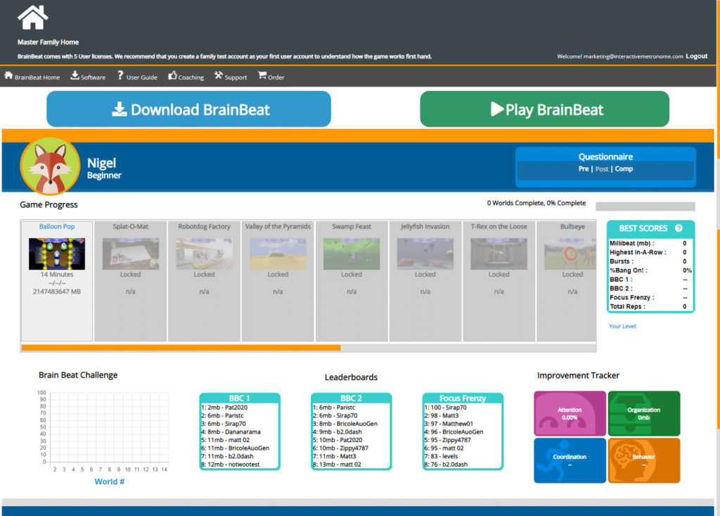 • Please note, BrainBeat comes with 5 user accounts. We recommend you create a family test account first, in order to understand how the game works first hand.